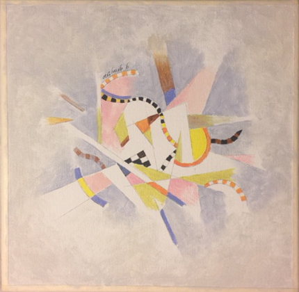Provocative titles describing a situation or concept inspire performers’ interpretations to words and abstract images. Each of twelve paintings were projected on stage as the setting for a performance by dancers, musicians, or actors.